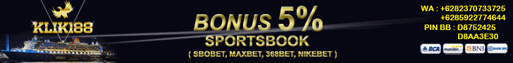 BONUS SPORTBOOK – KLIK188 akan memberikan bonus sebesar 10% kepada member baru yang melakukan deposit pertama, dan bonus 5% untuk deposit selanjutnya.